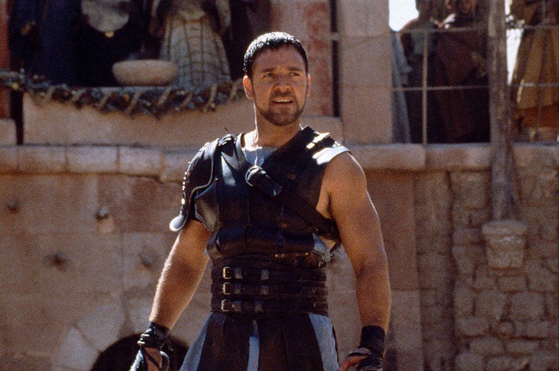 Russell Crowe is 6 feet tall and was roughly 180-185 pounds in the movie “Gladiator.”