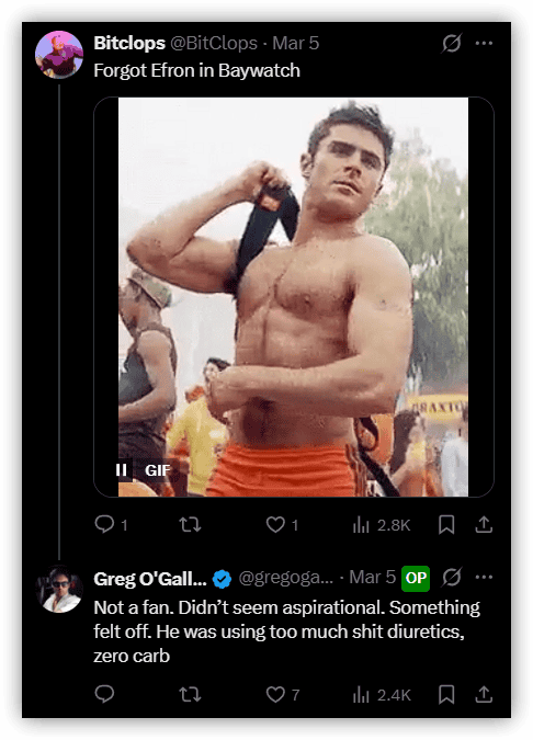 Someone recently asked me why I never hold up Zac Efron as a physique to strive for.